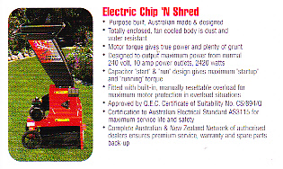 Branches & leaves from trees, rose bushes, and other vegetation can be easily mulched up and the mulch placed back onto the garden. This will help retain moisture in the soil, and provide a base to slow up weeds. We have electric and petrol engine driven mulchers.